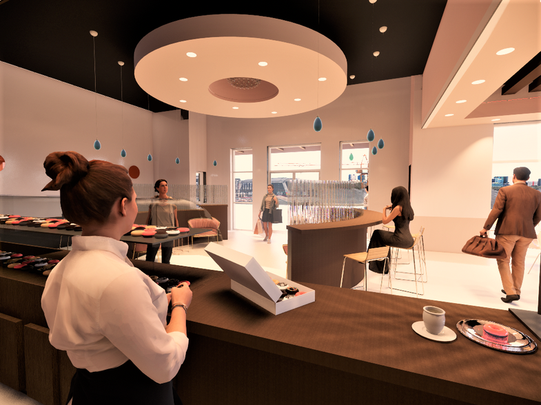 Team collaboration with various individuals to develop a design which adapted an existing retail building and turned it into a donut shop. concept branding evolved from the original cinnamon brown sugar donuts.
